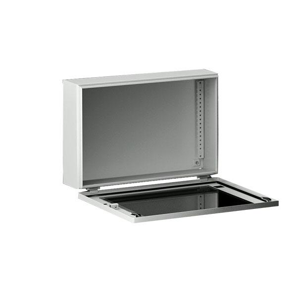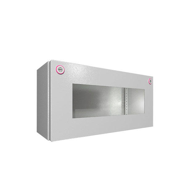 鋼板制成的壁掛式箱體,帶蓋板和檢視窗。防護(hù)等級(jí)